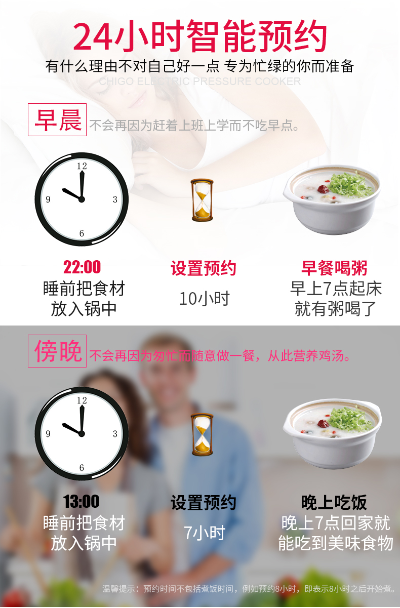 Chigo/九游体育 HY-615D电压力锅智能多功能定时预约6升家用饭煲