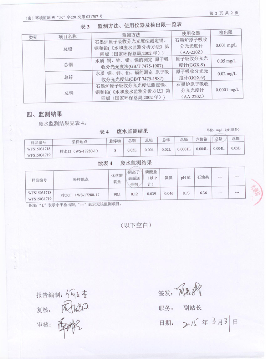 安全环保资料公布-废水监测报告-第4季度